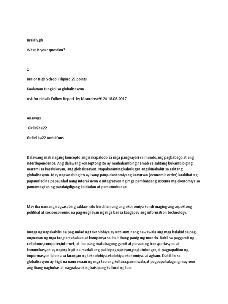 Repleksyn Tungkol Sa Iyong Natutunan Ng Ekonomiks Bilang Brainly Ph Ang trabaho puhunan at mga pinagkukunang lupain at ang pagmamanupaktura produksiyon pangangalakal distribusyon at konsumpsiyon ng mga kalakal at serbisyo ng areang ito. May tatlong anyouri ang globalisasyon. Follow Report by MicaelaNavarra 09102016 Log in to add a comment Answers.