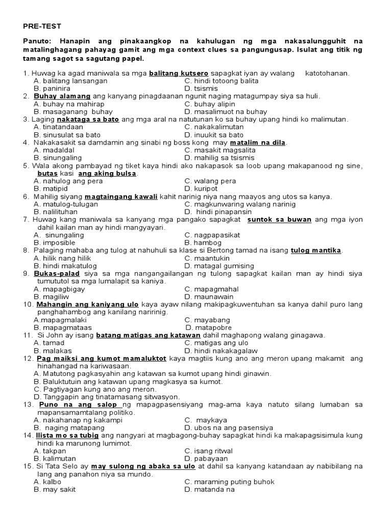 Context Clues And Comprehension In Idiomatic Expression Exam Pdf