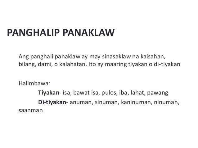 1 on a question. Ang panghalip panaklaw ay mga salitang panghalili o pamalit sa pangalan na sumasaklaw sa kaisahan dami bilang o kalahatnan. Panghalip Panaklaw Indefinite Pronoun Ano ang Panghalip Panaklaw.