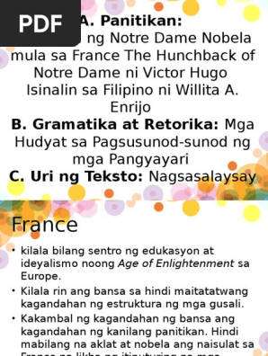 Ang kuba ng Notre Dame ay isang NOBELA. Save Save PPT Aralin 15-Ang Kuba Ng Notre Dame For Later. Saang bansang nagmula ang kuba ng notre dame.